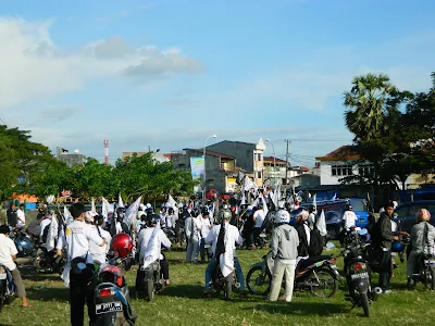 Makassar, visimuslim.com - Marhaban yaa Ramadhan, Ahad (7/7) HTI Sulsel melakukan pawai kendaraan berkeliling kota Makassar menyambut bulan suci Ramadhan 1434 H. Start dari Masjid Al-Markaz Al-Islamy, massa bergerak menyusuri jalan-jalan protokol kota Makassar menyerukan agar kaum Muslim menyambut datangnya bulan suci Ramadhan dengan gembira penuh sukacita dan menjalankan ibadah dengan sungguh-sungguh serta menjauhi perbuatan maksiat.