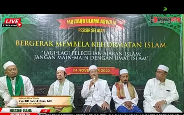 Tulungagung, Visi Muslim- Menyikapi pelecehan ajaran Islam yang kembali terjadi akhir-akhir ini, Ulama Aswaja Pesisir Selatan kembali menggelar Multaqo, Kamis (24/11/2022). Tak hanya pelecehan Khilafah oleh oknum komisaris BUMN, juga pelecehan terhadap Rasulullah yang dilakukan oknum komedian. Pelecehan terhadap ajaran Islam dan Nabi Muhammad Saw telah berulang kali terjadi. Sayangnya, tak ada tindakan tegas dari pemerintah, justru terkesan sengaja membiarkan kejadian ini.